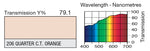 LEE 206 Quarter CT Orange Lighting Gel.  Converts daylight (6500K) to tungsten light (4600K).